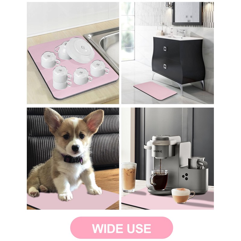 Dish Drying Mat for Kitchen Counter, 16"x24" Dish Drying Pad with Non-slip Rubber Backed, Hide Stain Anti Absorbent for Kitchen Counter, Drying Mat for Coffee Machine Dish Rack (Pink)