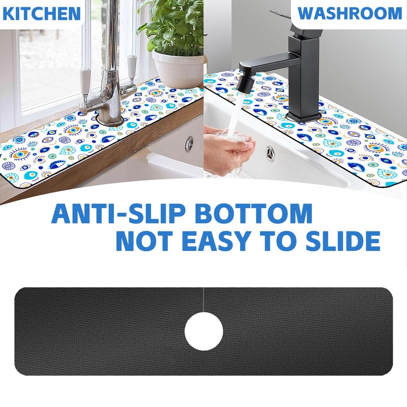 Dish Drying Mat for Kitchen Sink Doodle Drawing Evil Eyes plash Guard Behind Faucet Sink Mat Absorbent Fast Drying Faucet Draining Mat for Bathroom Kitchen 5.5”×24”