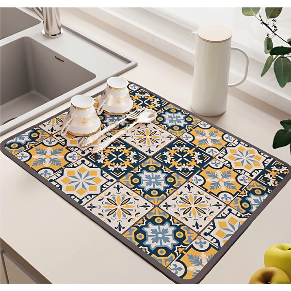 - (Excellent Absorbency and Quick Drying) The soft diatomaceous earth drying mat has excellent water absorption properties of diatomaceous earth and can quickly absorb moisture. Thick dish drying mat is breathable and absorbent so you can avoid the hassle of wiping wet dishes with one air dry