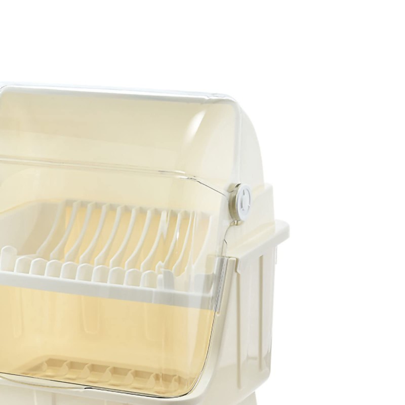 IDE APPLICABILITY? Our multifunctional kitchen storage box can be used to store bowls, dishes, chopsticks, bottles, or condiment jars, making it a versatile addition to your kitchen. The clear cover protects your washed dishes from flies, mosquitoes, cockroaches, and more, making it a safe way to organize and store baby bottles, kids' dishes, and utensils.