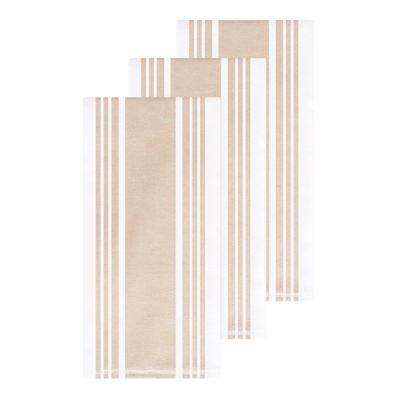 Dish Towels Dual Purpose Reversible, 100% Absorbent Cotton, Kitchen Towels Set of 3 Striped, 17" x 30", 3-Pack Cappucino All-Clad Textiles