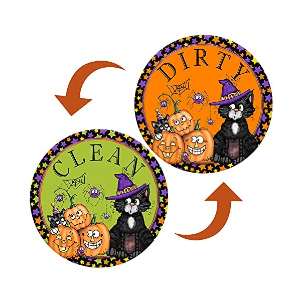 Dishwasher Magnet,Clean Dirty Sign Indicator- Double Sided Magnet with Magnetic Plate, Kitchen Dish Washer Refrigerator Reversible Indicator Haloween Cat