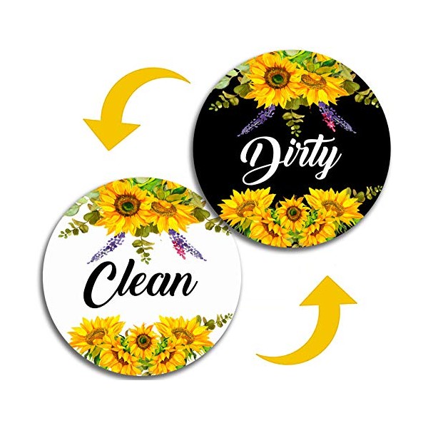 Dishwasher Magnet,Clean Dirty Sign Indicator- Double Sided Magnet with Magnetic Plate, Kitchen Dish Washer Refrigerator Reversible Indicator Sunflower