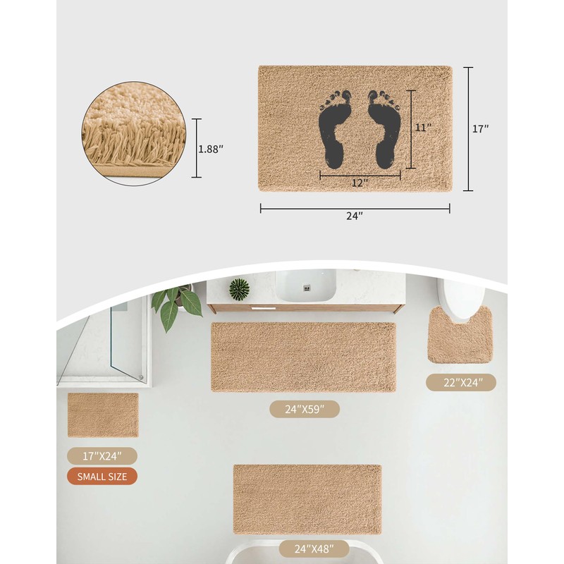 - Versatile Sizes for All Spaces: The Disolla bathroom rug comes in six sizes: 17x24, 20x32, 24x36, 24x48, 24x59 and 24x70 inches. From compact powder rooms to spacious master bathrooms or bedrooms, our rug is a good fit for every corner of your home
