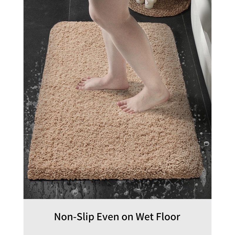 Disolla Beige Bathroom Rug 24x48 Non Slip Fluffy Bath Mat for Bathroom Floor Washable Plush Luxury Bath Rug for Tub Soft Shaggy Absorbent Shower Sink Mat