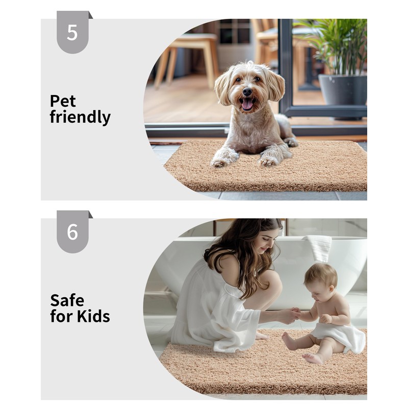 - Stay Securely in Place: Compared to other bathroom mats, Disolla bath rug is designed with Foam Latex Backing(anti slip performance improved by 150%). This bathmat firmly grips the floor to prevent your family from falling, even on damp surfaces