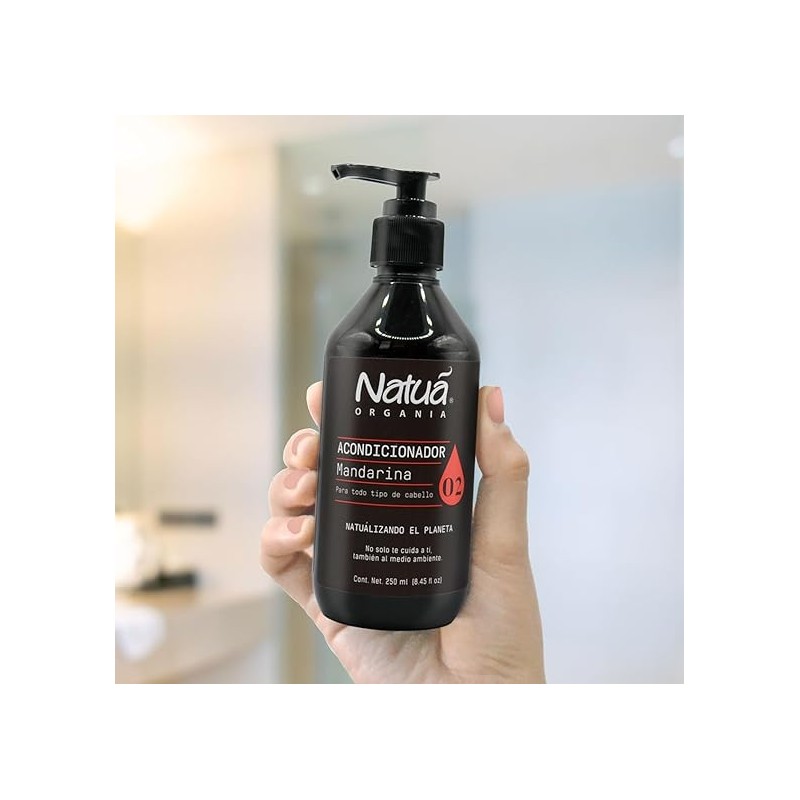 Logra una apariencia sedosa y brillante en tu cabello al mismo tiempo que lo mantienes saludable con nuestro acondicionador Natuá Organia. Su fórmula es una exquisita combinación de manzanilla y mandarina que relajará y refrescará tus sentidos. Su presentación facilita su portabilidad y su dispensador dosifica adecuadamente la cantidad de producto a utilizar, evitando de esta manera el desperdicio, traduciéndose en un mayor ahorro por lo que resulta perfecto para hoteles, Airbnb, cabañas, bungalows, etc. Natuá Organia es una línea cuyas texturas y aromas crean productos únicos y distintivos que garantizan una experiencia inolvidable para quien los usa. La gama Natuá Organia está pensada para el cuidado de nuestro planeta al contar con materiales biodegradables y empaque reciclable, por lo que tu compra contribuye a combatir el impacto ambiental al mismo tiempo que cuidas tu cabello y el de tus huéspedes. ¡Busca los demás productos de la línea Natuá Organia!