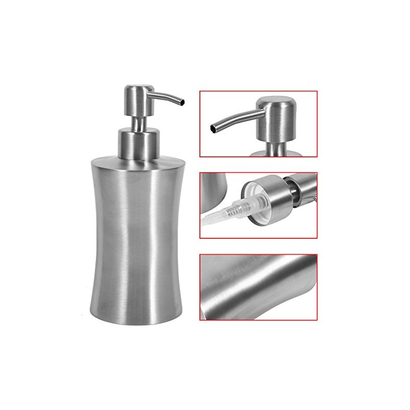 Este artículo está hecho de acero inoxidable 304 de alta calidad, antioxidante, resistente a la corrosión, duradero y resistente al uso. Diseño de bomba, jabón o champú líquido sale fácilmente. Tiene un tamaño razonable con una boca de apertura amplia, puedes usarlo repetidamente para llenar champú líquido, jabones en loción, etc., muy económico y práctico.