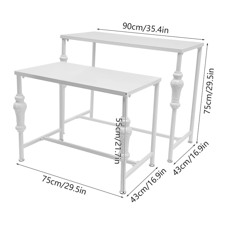 - THOUGHTFUL DESIGN: The display stand has two kinds of display shelves, high and low, you can choose different products to be displayed on different height display shelves according to your preference, creating different effects. Simple structure, smooth surface, just wipe it with a soft cloth, very convenient.