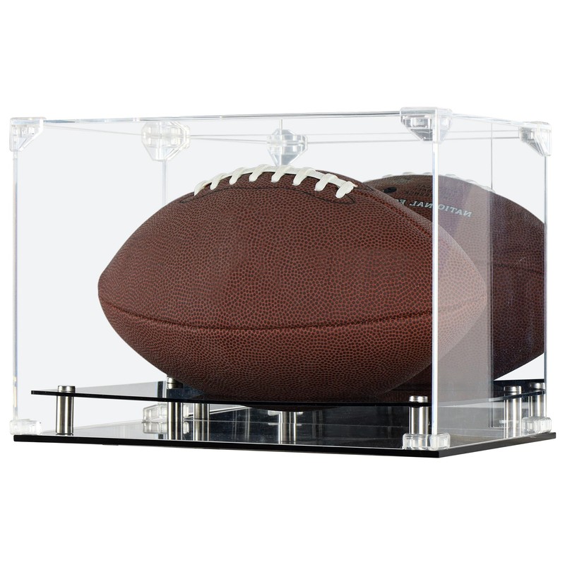 - Full size UV protection display stand fits a football with up to a 22.05" circumference and a length of 11.4". Mirrored background to create a lovely display.