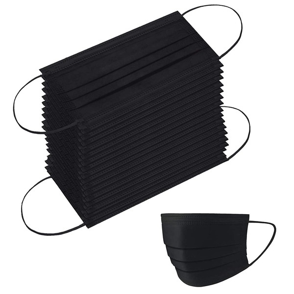 Disposable 100PCS Black 3 Layer Protection Face Mask with Adjustable Ear Loops