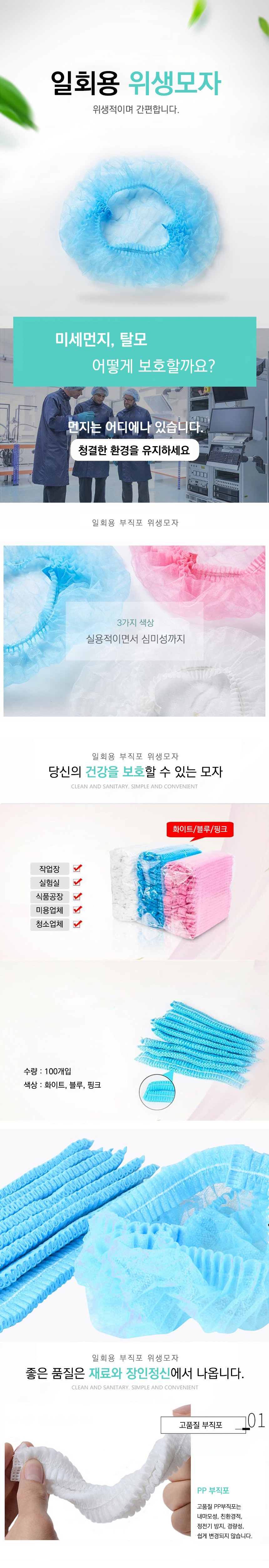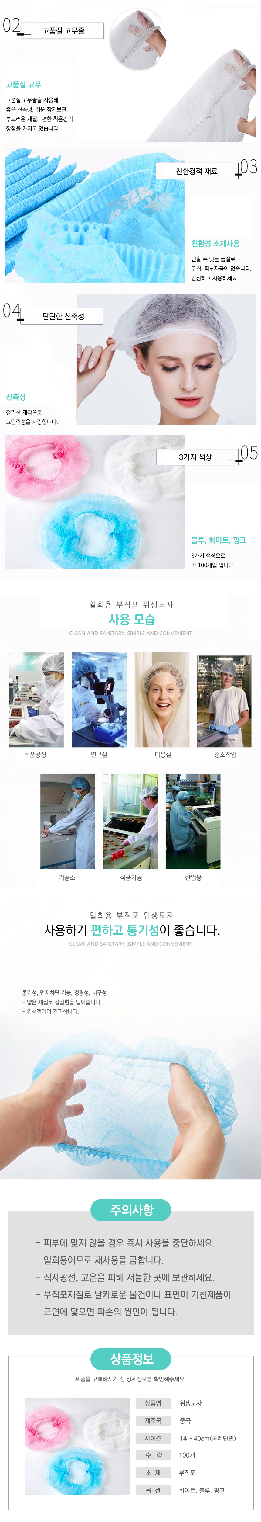 일회용 요리 부직포 100매 대용량 위생모자 헤어캡 - 2-위생모자-흰색