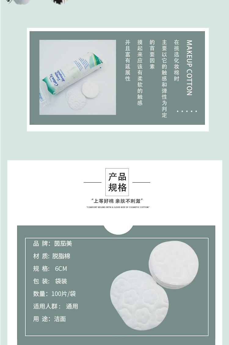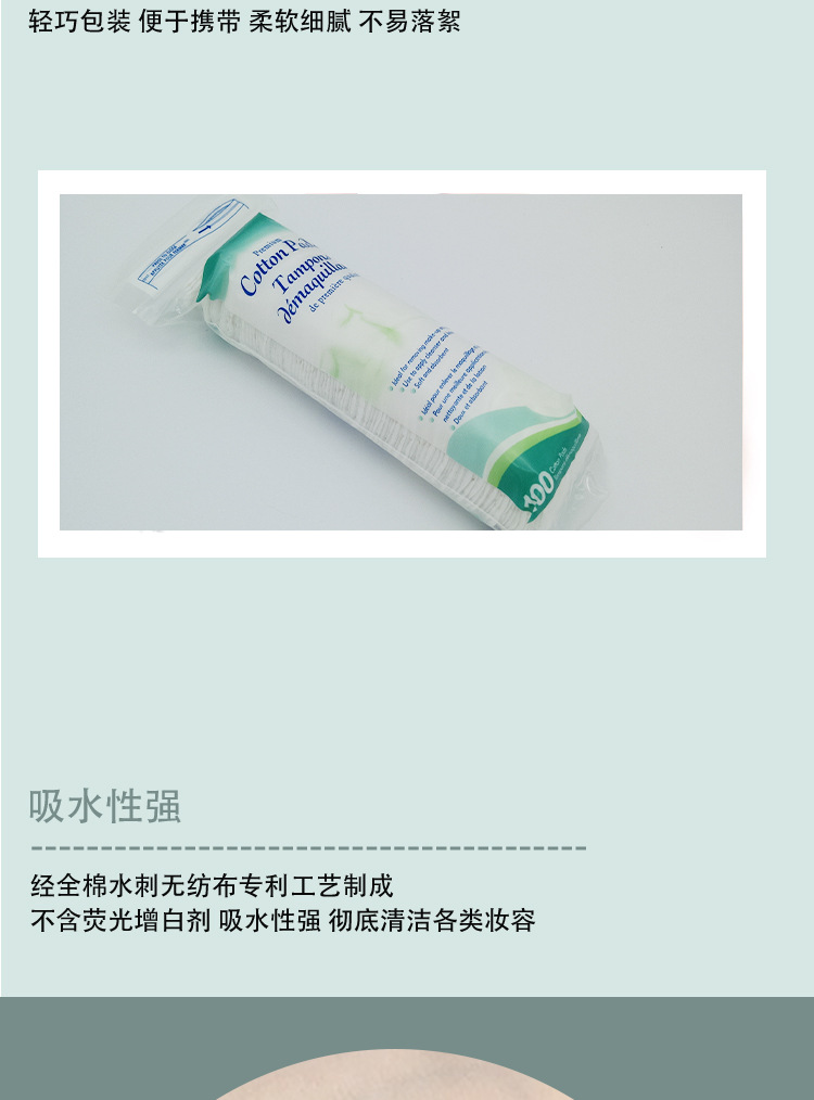 Disposable Embossed Absorbent Round Cotton Pads - Skin-Friendly & Moisture-Saving (Bagged, 100 Pcs) Pack 10ea