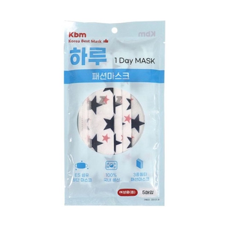 Disposable Fashion Mask, 3-Layer Filter, Star Check 5 Pcs Star Pattern 3ea