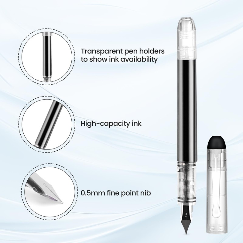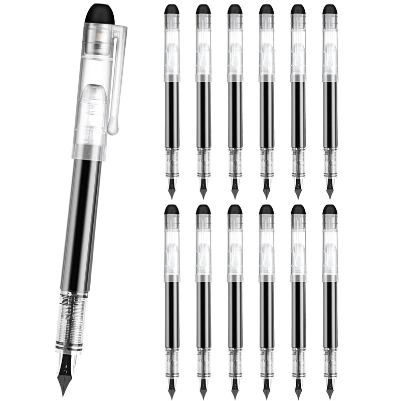 Karhood Disposable Fountain Pens for Writing - Fine Point Nib, Pack of 12, Black