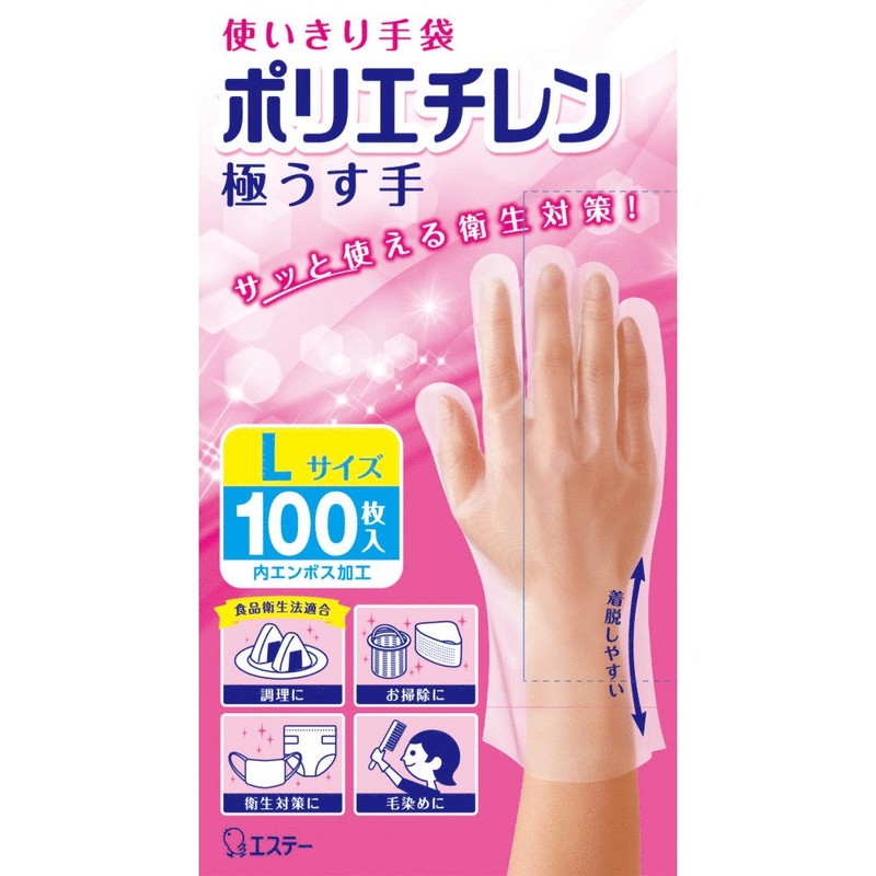 Disposable Gloves, Polyethylene, Ultra Thin, Large, Translucent, 100 Pieces, Disposable, Food Sanitation Law Compliant
