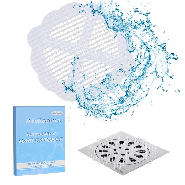 Disposable Hair Drain Catcher 50Pack - Easy to Clean, No More Clogging with Drain Buddy Mesh Stickers -Ardicema (Round)