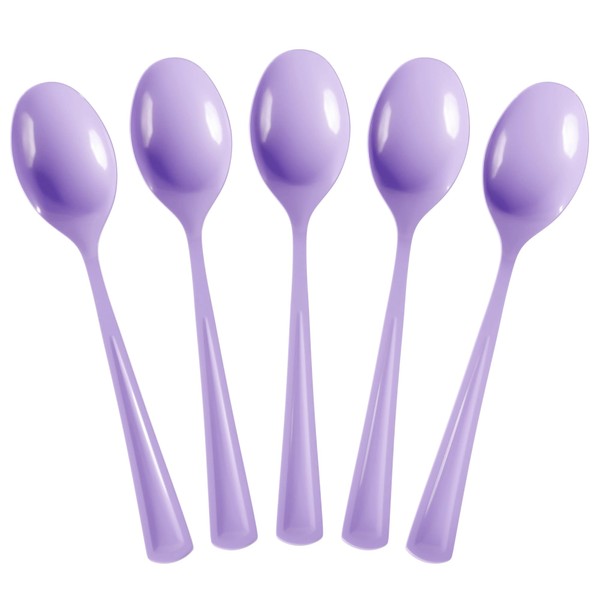 - 【 Includes 】 50 pack of heavy-duty 7.5 inch Lavender plastic Spoons. These durable Spoons are strong yet disposable cutlery making them the perfect plastic silverware option for any party or occasion. Offering multiple different color options, they are sure to match your decor.