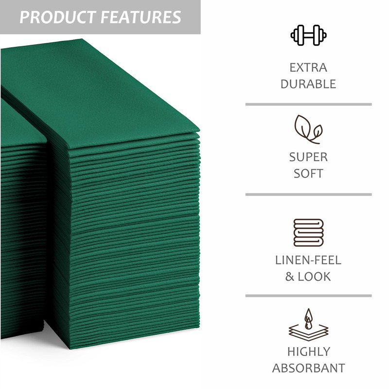Disposable Linen-Feel Green Napkins, 12" x 17" Cloth-Like Paper Dinner Napkins For Wedding, Bathroom, Party Or Event, 50 Pack