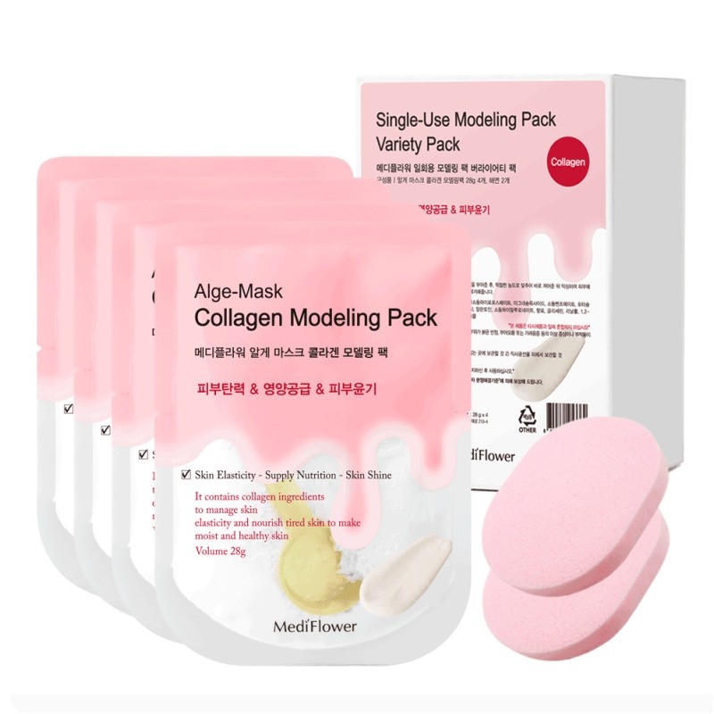 Disposable Modeling Pack Variety Pack (Collagen 28g x 4 + Sponge x 2) / 일회용 모델링팩 버라이어티팩 (콜라겐 28gx4+해면x2)
