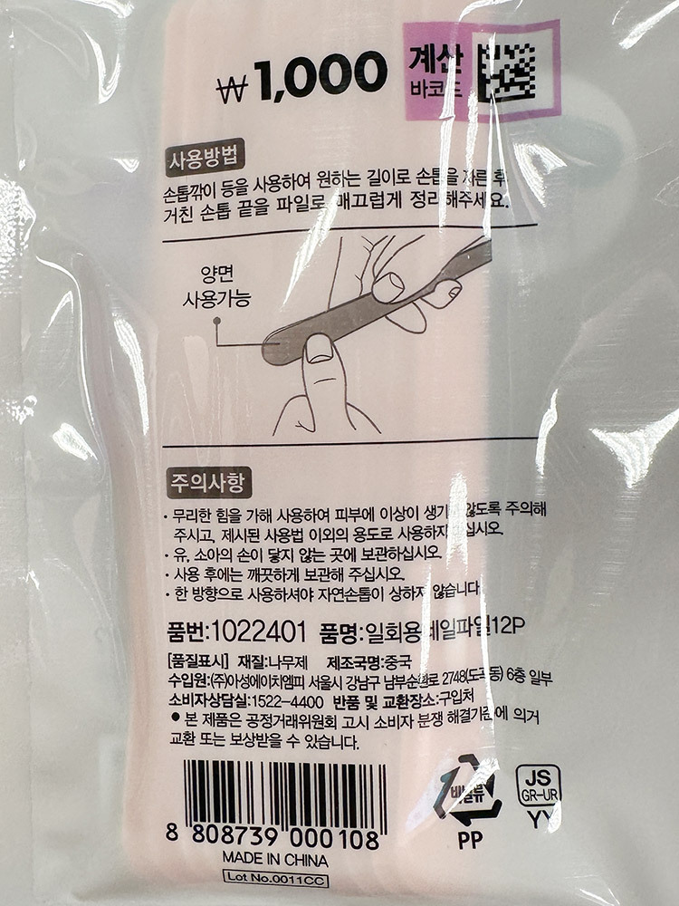 ![]() ![]() 일회용 네일파일 12개입 1022401