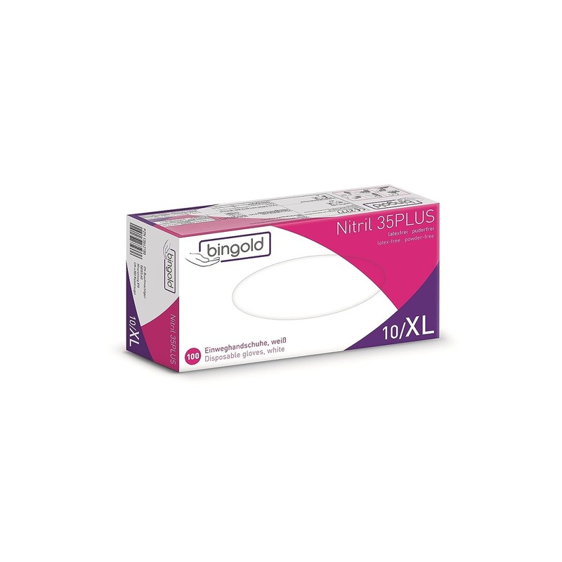 Disposable Nitrile Gloves 35PLUS, Blue or White, Pack of 100, Sizes: S, M, L or XL, xl, White