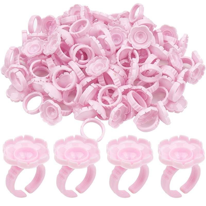 Disposable Plastic Eyelash Flower Glue Ring Lash Extension Blossom Holder Cup (Pink)