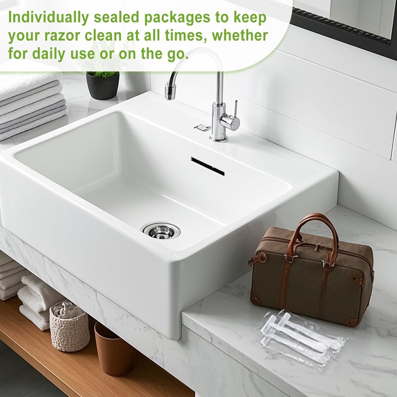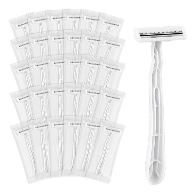 - Brand: Lilingsty. Wide range of uses: disposable razors individually wrapped material is environmentally friendly, a pack of 50, in bulk, individually wrapped. It can be placed at home and used when guests come home. It is also suitable for hotels, homestays, shelters, church charity events, nursing home residents, Homeless.