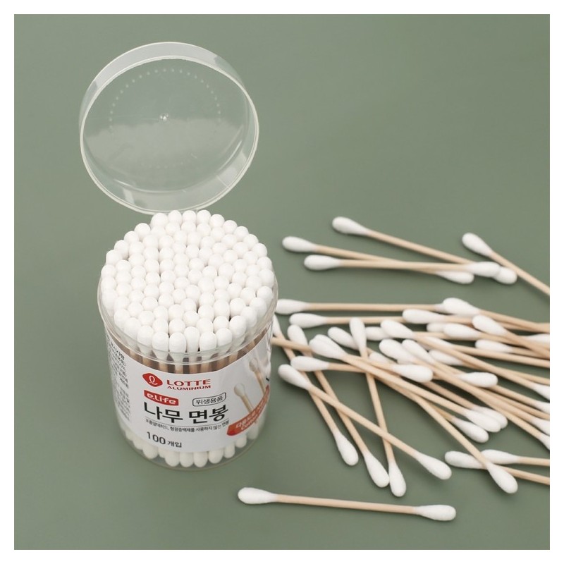 Disposable Round Wooden Cotton Swabs, 100 Count Double-sided 5ea