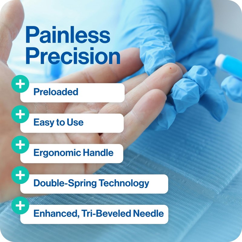 - Safety First – Test with care-free confidence thanks to your sterile, surgical steel finger stick diabetes lancet. The blade provides a smooth prick, then retracts into the device and locks automatically.