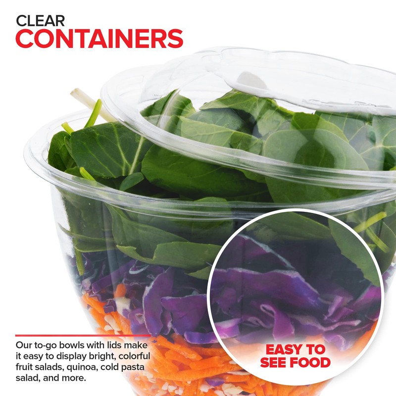 - Clear Containers: The clear appearance of our to go bowls with lids make it easy to display bright, colorful meals. Perfect for cut-up fruit, quinoa, cold pasta salad, and more.