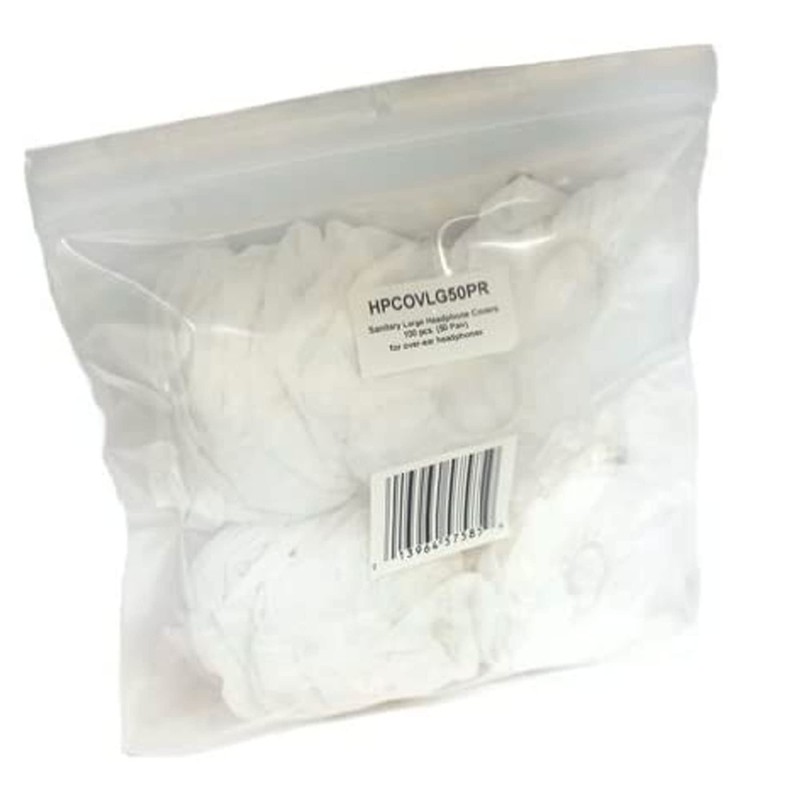 - Resealable bag contains 50 pairs of white sanitary headphone covers (100 pieces)