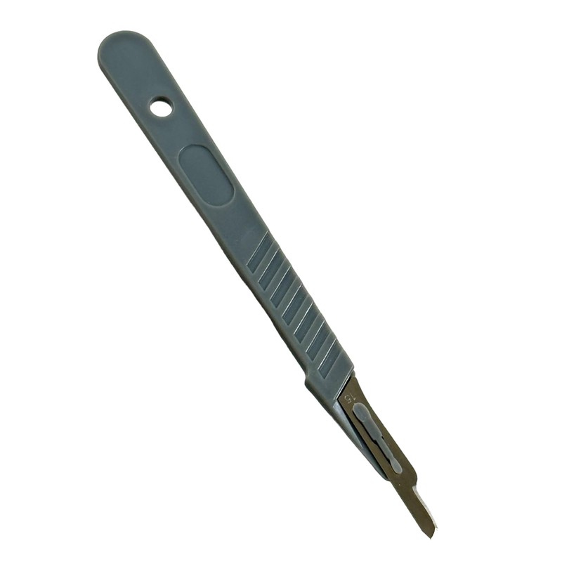 - Product: No. 15 Disposable Scalpel with Plastic Handle and Carbon Steel Blade, 10 Per Box/Pack.