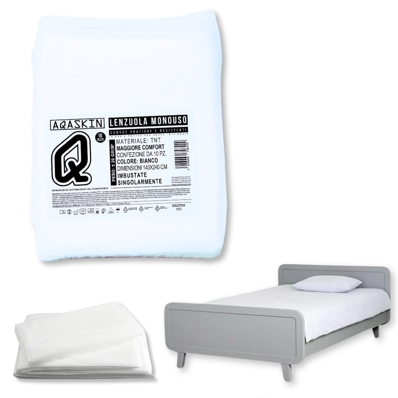 Disposable Sheets in TNT, Single Packed Sheet, 140 x 240 cm, White Colour, Quantity 10, 20, 50, 100 Pieces.