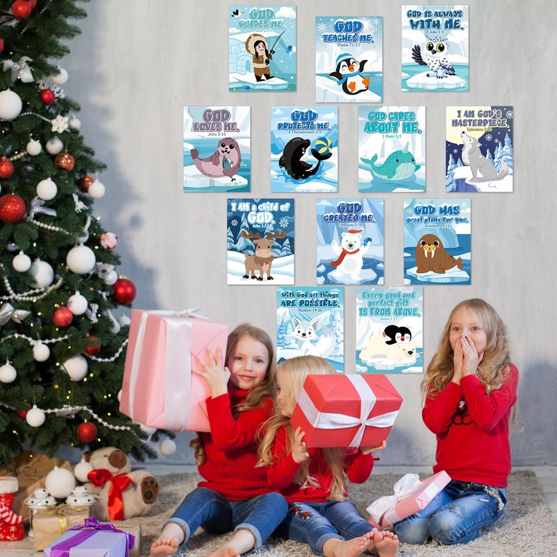 Dispowreath 12 Pcs Winter Polar Animals Posters for Classroom Religious Winter Bulletin Board Decorations Christian God Winter Animals Paper Cutouts for Office Home Christmas Holiday Party Supplies