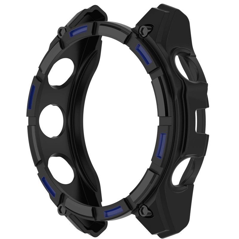 Disscool Case Cover Compatible with Garmin Fenix 8 51mm Solar Smartwatch Soft Anti Drop TPU Replacement Protective Cases Shell Smart Watch Accessories(Black+Blue)
