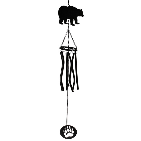 Black Bear Wind Chime with Metal Tubes, 37.5"