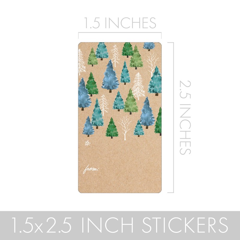 - 75 GIFT WRAP TAGS: Blue and Green Trees and Wintry Snowflake Christmas gift tags on kraft are self-adhesive, easy to peel and stick onto wrapping paper or gift bags. Kraft is printed design not paper.