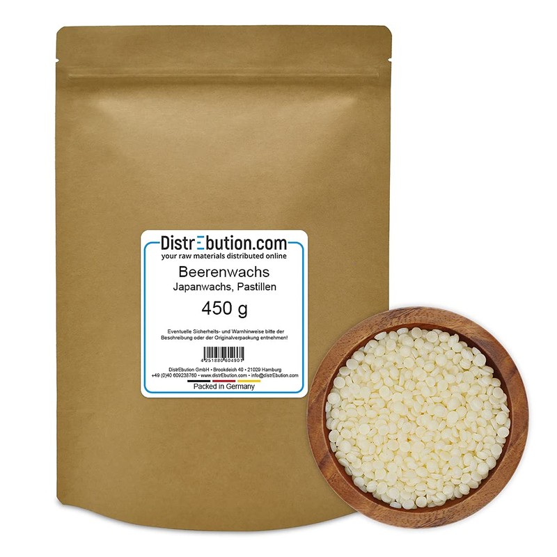DistrEbution 450 g Berry Wax/Japanese Wax in Pastilles - Various Quantities - Vegan & Vegetable Wax, for Natural Cosmetics and More