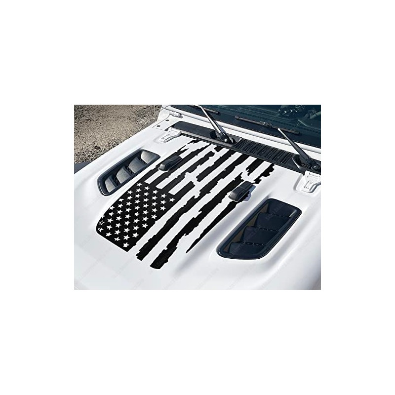 Distressed American Flag Hood Decal to fit Rubicon Jeep Wrangler Gladiator JL JT 2018-2023 (Matte Black)