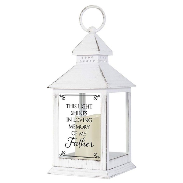 Distressed White Memorial Lantern with Flameless Candle (Father)