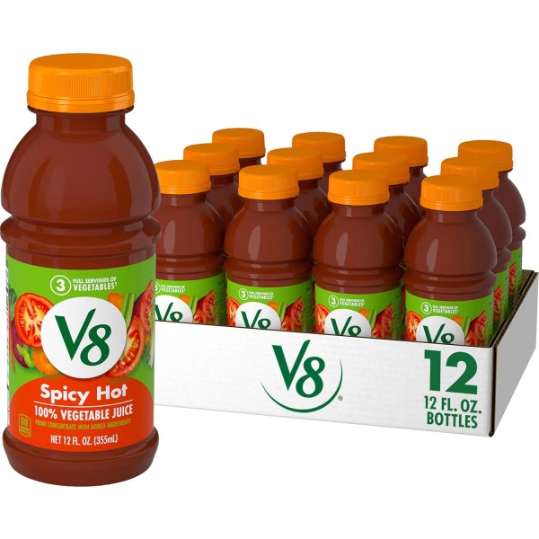 • Twelve (12) 12 fl oz single-serve bottles of V8 Spicy Hot 100% Vegetable Juice