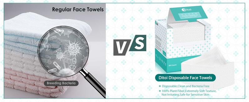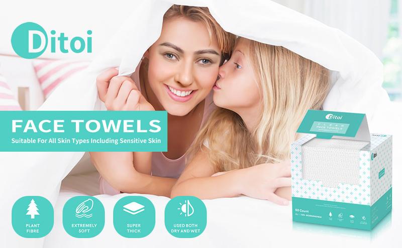 【SUPER SOFT FACE TOWELS】Ditoi face towels measure 10" x 12" inches, which are much softer and thicker than other disposable face cloths. Ditoi facial towels have excellent water absorption and breathability, making you feel more comfortable when washing your face.