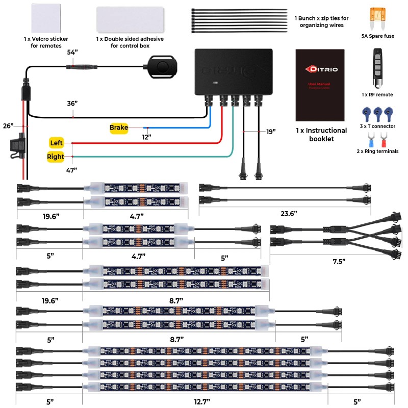DITRIO 12pcs Underglow LED Strip Light Kit with APP Control, Dual Zone, Brake Turn S...