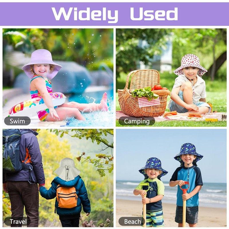 - SUN PROTECTION:The wide brim and long neck cover of the children's summer hat can protect your child's head,eyes,face and neck from strong sunlight