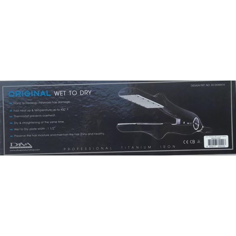 DIVA Wet-To-Dry Titanium Flat Iron 1.5", for Damp/Wet hair, Made in Korea.