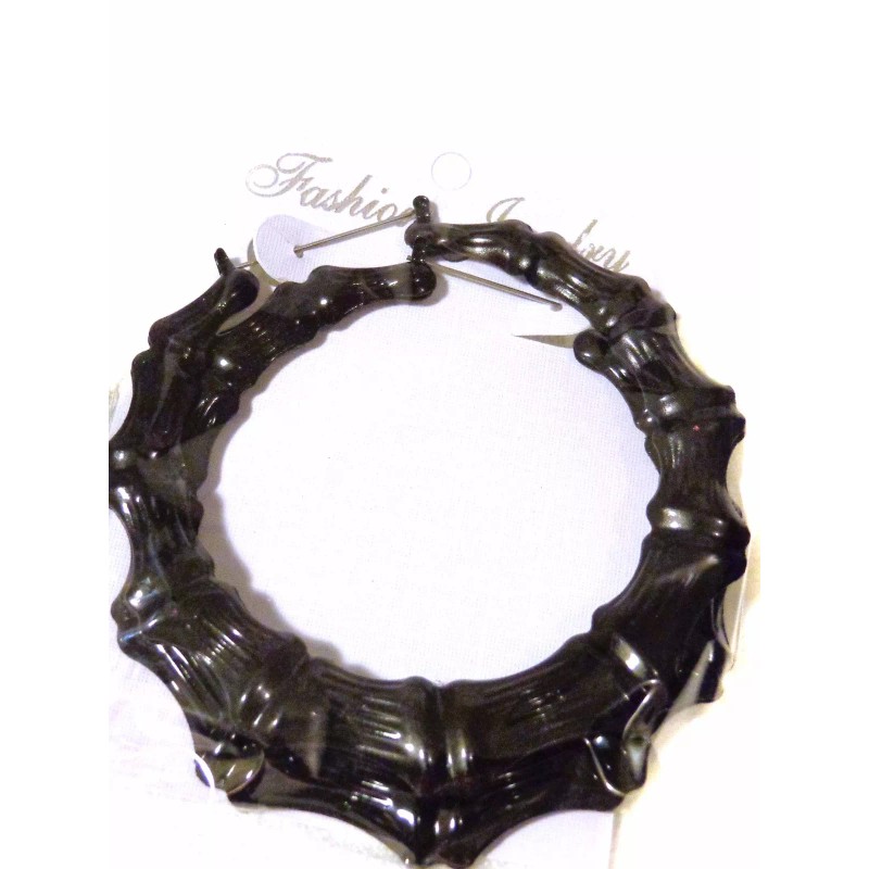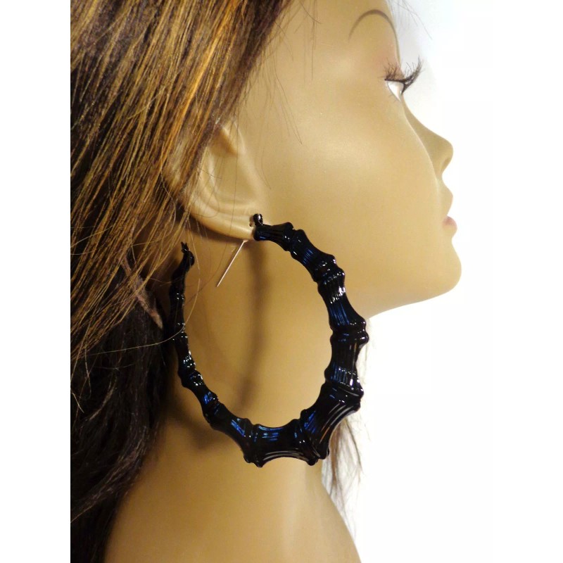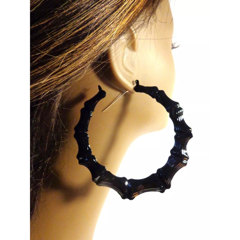 Divas Diggables LARGE BAMBOO HOOP EARRINGS BLACK BAMBOO HOOP EARRINGS 3.5 INCH HOOPS FULL HOOPS