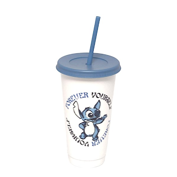 DIVAS SPIRITUAL Fun Forever Yourself Design, Spill-Resistant, Durable and Portable Lillo & Stitch Drink Cup with Straw (Forever Stitch)