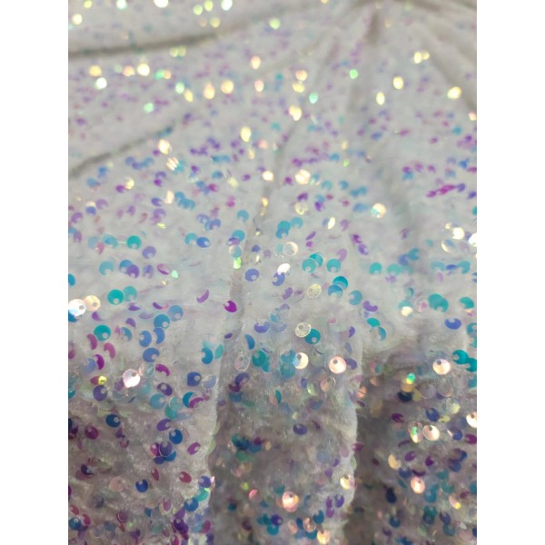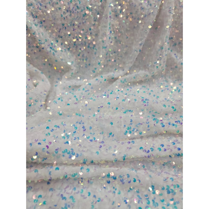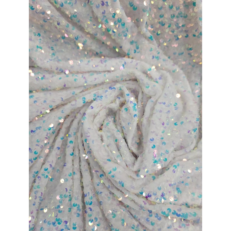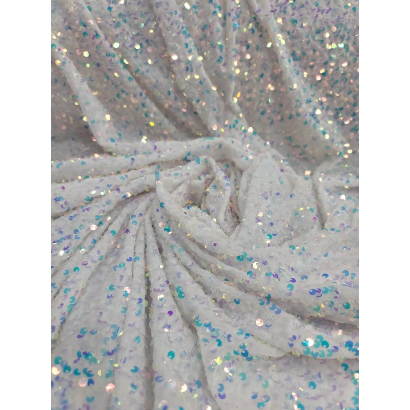 Divastyletextiles White Velvet Clear Iridescent Sequin Fabric By Yard Shine Sparkle Fashion Stretc