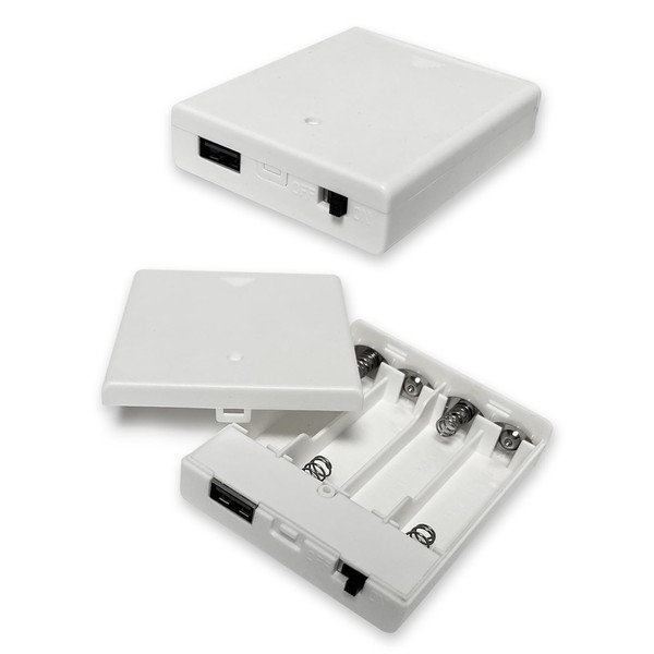 DIVATLA USB Battery Pack for Led Lights - 4 AA Battery Holder, 6V Battery Powered Neon Sign with On/Off Switch, AA Battery Case for Neon Sign, Battery Case Box, White Suit for Wedding Party Exhibition